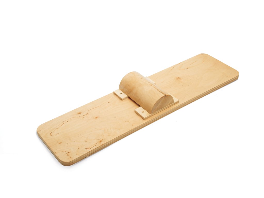 Dřevěná balanční deska s válcem. Děti balancují na desce, která se kývá na válci, čímž si zlepšují rovnováhu, koordinaci a posilují hluboký stabilizační systém. Vhodné pro individuální i skupinové hry.