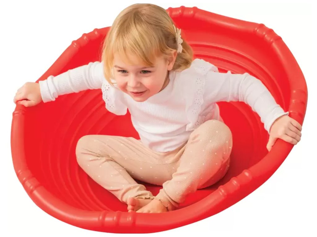 Balanční talířek je velká plastová konstrukce se zaobleným tvarem, určená pro cvičení rovnováhy a rozvíjení pohybové koordinace. Vyžaduje udržování rovnováhy, což podporuje rozvoj posturálních svalů a uvědomění si vlastního těla. Vhodná velikost a lehká konstrukce umožňují různé způsoby použití, od dynamických cvičení po relaxační kolébání. Ideální pro pohybové aktivity ve vzdělávacích a terapeutických zařízeních.