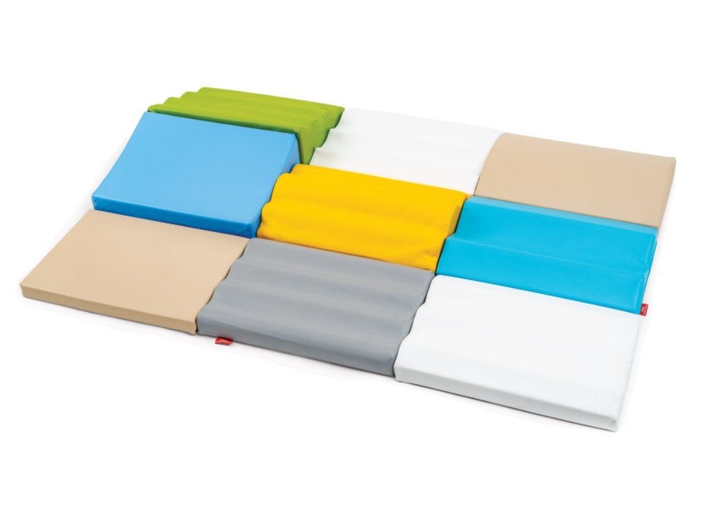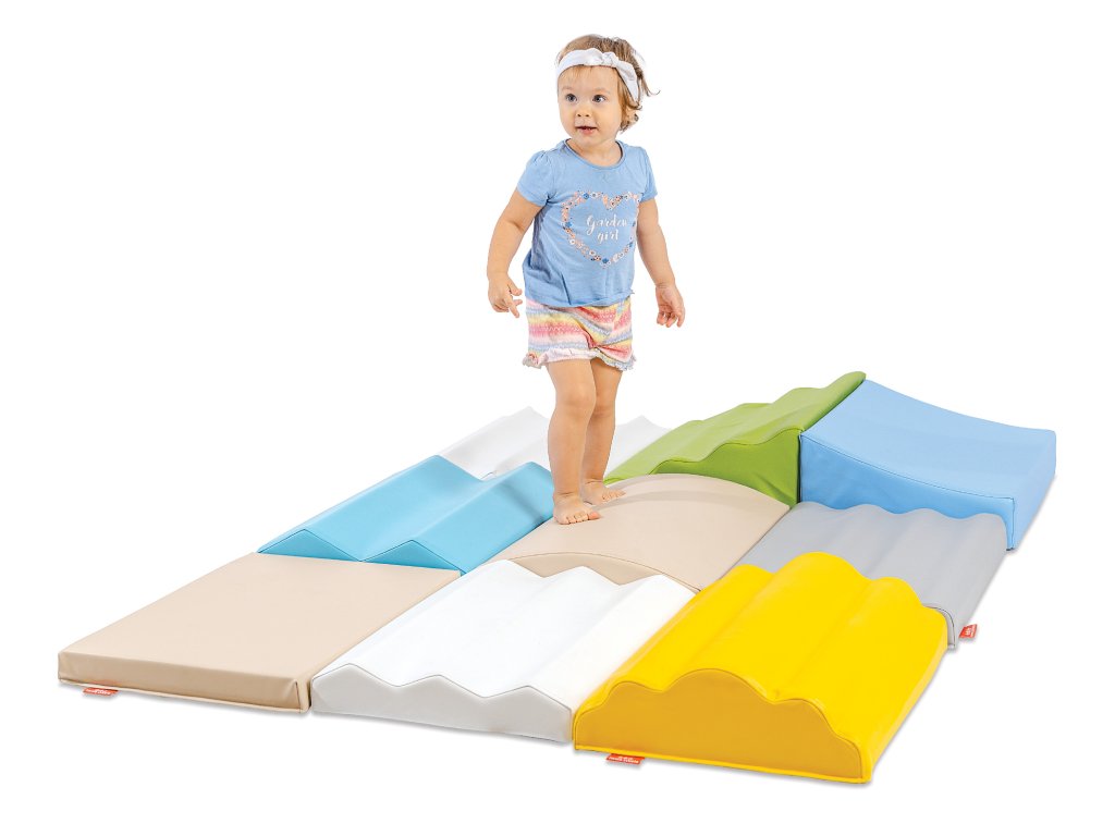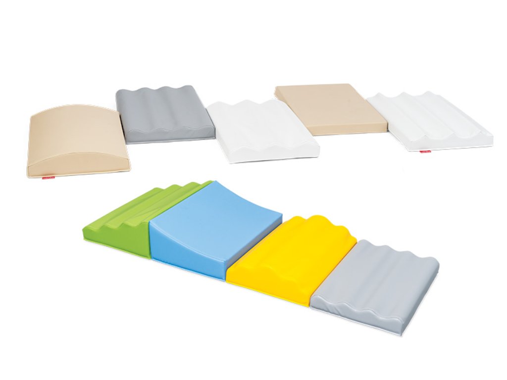 Maxi sada 9 rehabilitačních pěnových prvků pro nejmenší (rozměry cca 60 × 39 cm, různá výška 5–20 cm). Obsahuje kopce, domečky, vlnu, klín a další tvary. Podporuje rozvoj motoriky, koordinace a rovnováhy.