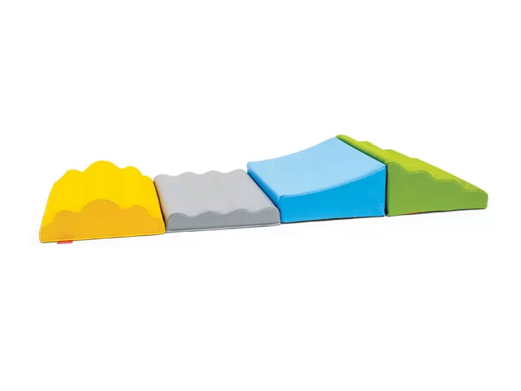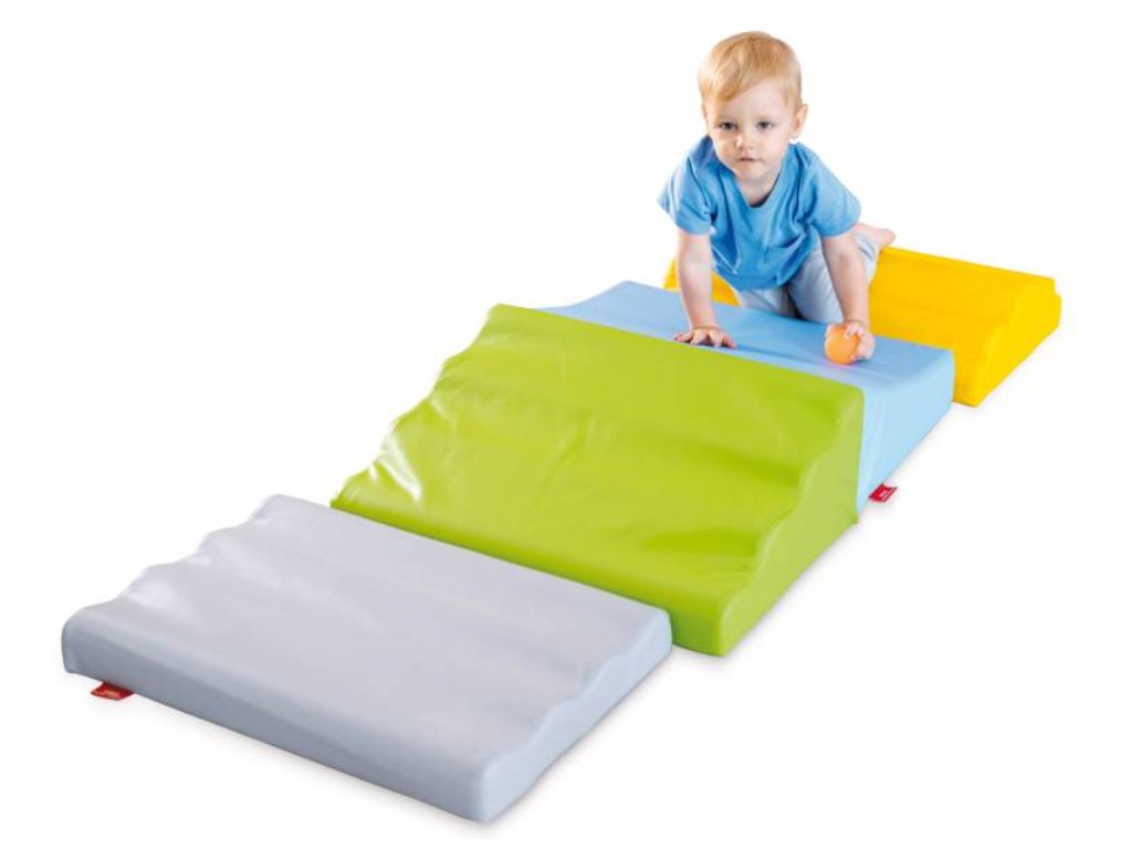 Dětské rehabilitační chodníky se skládají ze čtyř prvků, potažených PVC fólií bez ftalátů, odolnou proti oděru, což zajišťuje vysokou odolnost a snadnou údržbu. Výplň z vysoce pružné polyuretanové pěny přispívá k pohodlí při používání. Sada podporuje motorický vývoj dětí a umožňuje různá cvičení zaměřená na rovnováhu, koordinaci a vnímání vlastního těla. Díky protiskluzovému dnu ze strukturované PVC tkaniny mohou děti bezpečně objevovat a hrát si v různých konfiguracích.