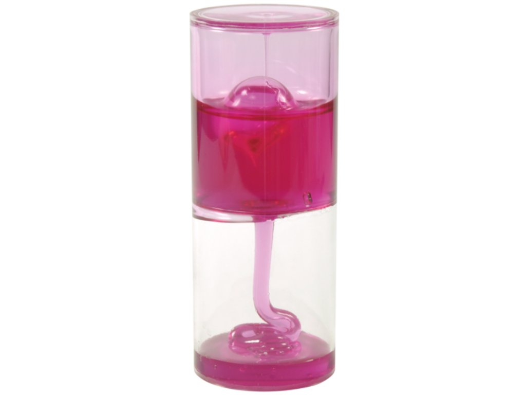 Otočte vzhůru nohama a žasněte, jak se růžová rosolovitá tekutina pomalu přesouvá otvorem do druhé poloviny válce, než spirálovitě pokryje dno. Takto „viditelná“ gravitace dokáže děti nadchnout. Přibližně po 7 minutách je fascinující a uklidňující podívaná u konce. V důsledku přesunu pak v horní dutině občas vyvstane bublina.