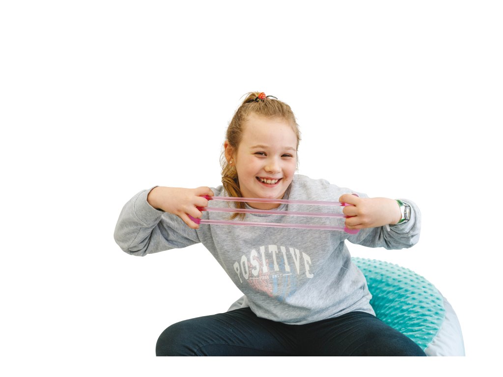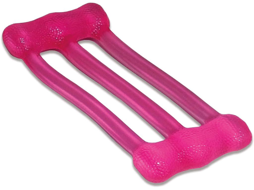 Expandér (18 × 10 cm) z termoplastické gumy – slabý odpor (růžový). Vhodný pro posilování rukou, protahování a zlepšení koordinace.