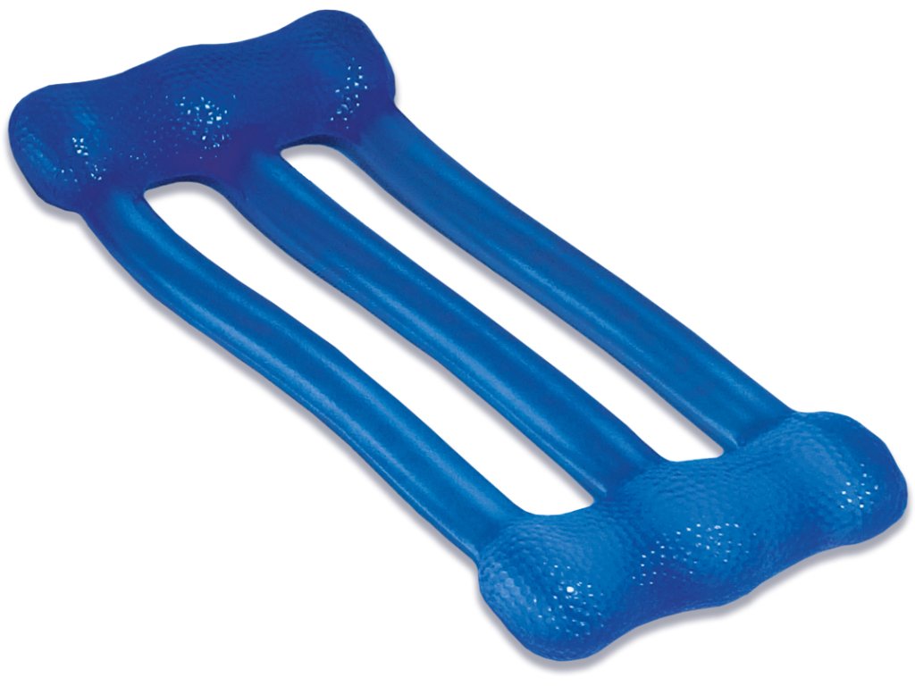 Expandér z termoplastické gumy (18 × 10 cm) – střední odpor (modrý). Vhodný pro posilování rukou, protahování a zlepšení koordinace.