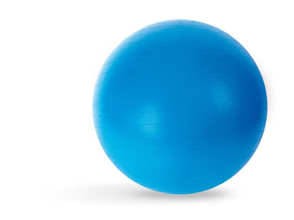Modrý gymnastický míč (průměr 90 cm) pro rehabilitaci a posilování. Zlepšuje rovnováhu a koordinaci.