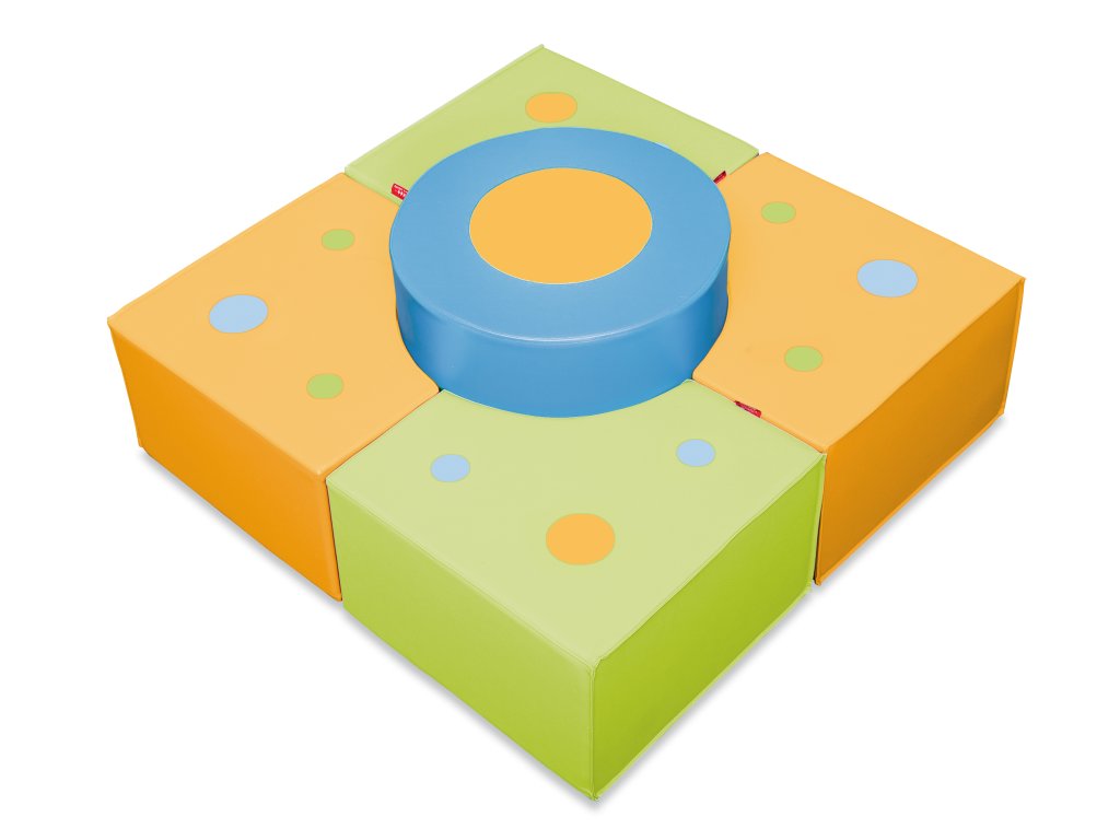 Sada 5 pěnových sedáků tvořících kreativní koutek (sestava 110 × 110 × 47 cm). Variabilní uspořádání pro odpočinek, hry i skupinové aktivity. Odolný a snadno čistitelný povrch.