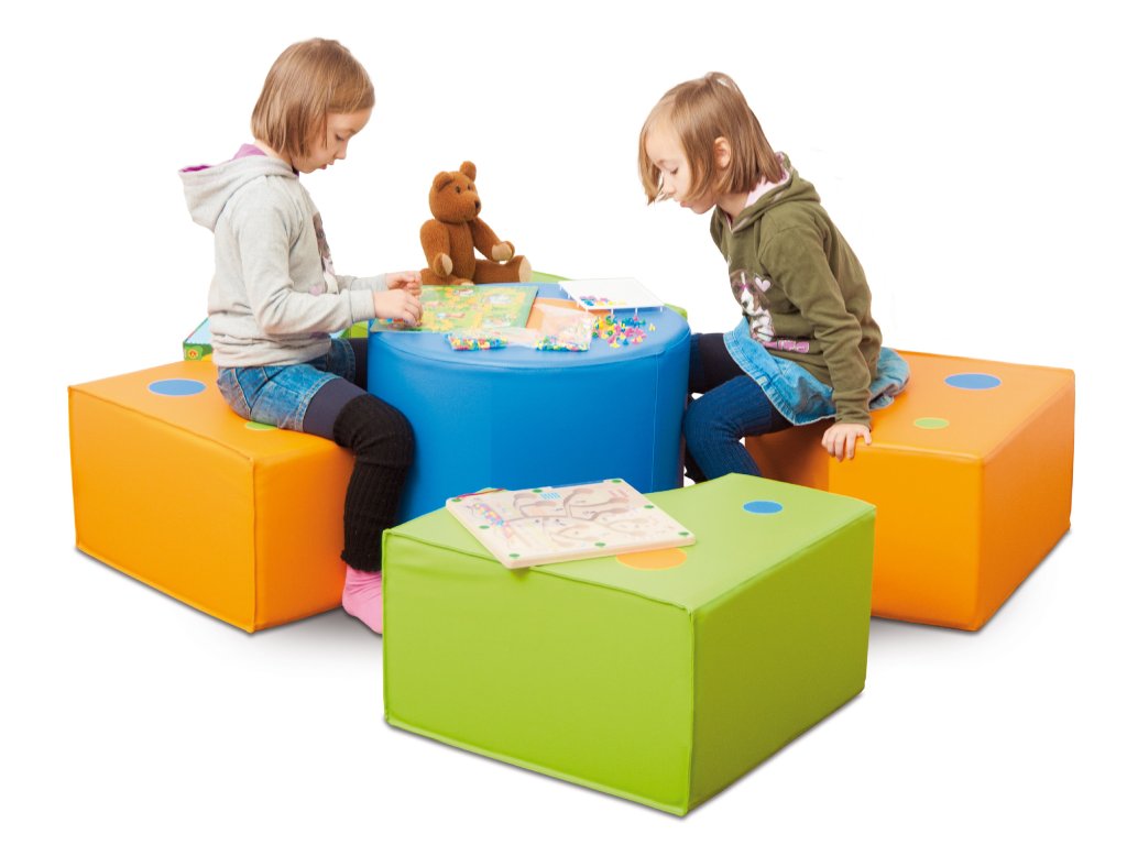 Koutek kreativních aktivit je sada barevných pěnových sedáků potažených PVC fólií bez ftalátů, odolnou proti oděru, a vyplněných vysoce pružnou polyuretanovou pěnou, která zajišťuje pohodlí a odolnost. Sada se skládá z pěti prvků, které lze různě nakonfigurovat a vytvořit tak útulný prostor pro kreativní hru a aktivity. Je ideální jako relaxační zóna, místo pro skupinová setkání nebo pro rozvoj motorických dovedností dětí.