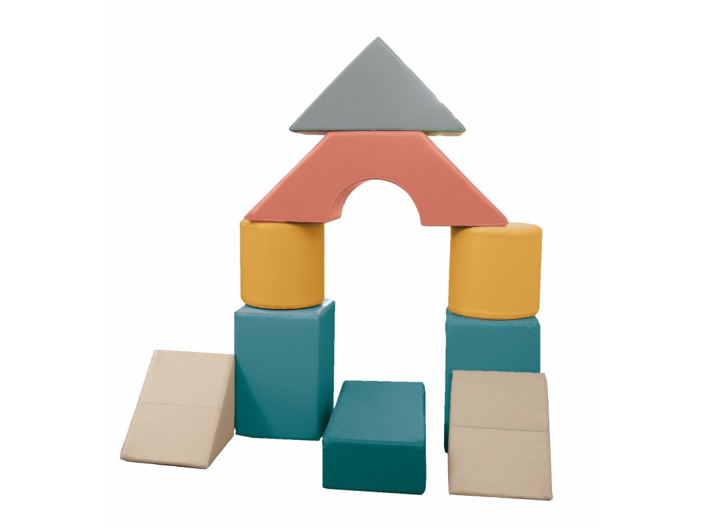 Sada 10 pěnových kostek různých velikostí (až 90 cm). Podporuje kreativitu, stavění a týmovou spolupráci. Lehké, stabilní, s odolným a snadno čistitelným povrchem. Vhodné pro školy, školky i domácí hraní.