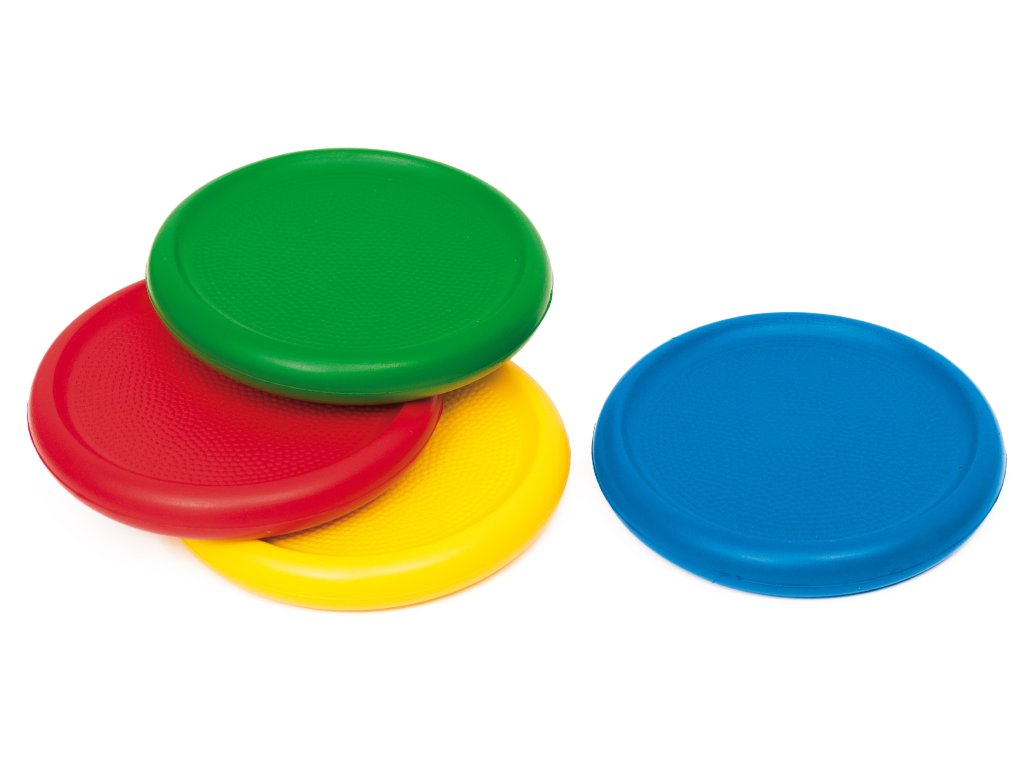 Sada 4 pěnových létajících disků (průměr 20 cm) v barvách modrá, žlutá, zelená, červená. Lehké a bezpečné pro házení a chytání. Vhodné pro rozvoj koordinace a obratnosti.