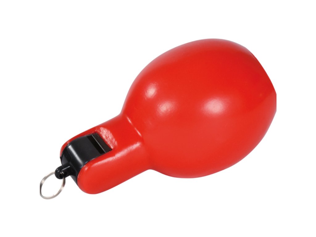 Hygienická ruční píšťalka (průměr 6,5 cm, délka 11 cm) ovládaná stlačováním měchu – bez ústního kontaktu. Vhodná pro sport, školy a terapie. S očkem na zavěšení.