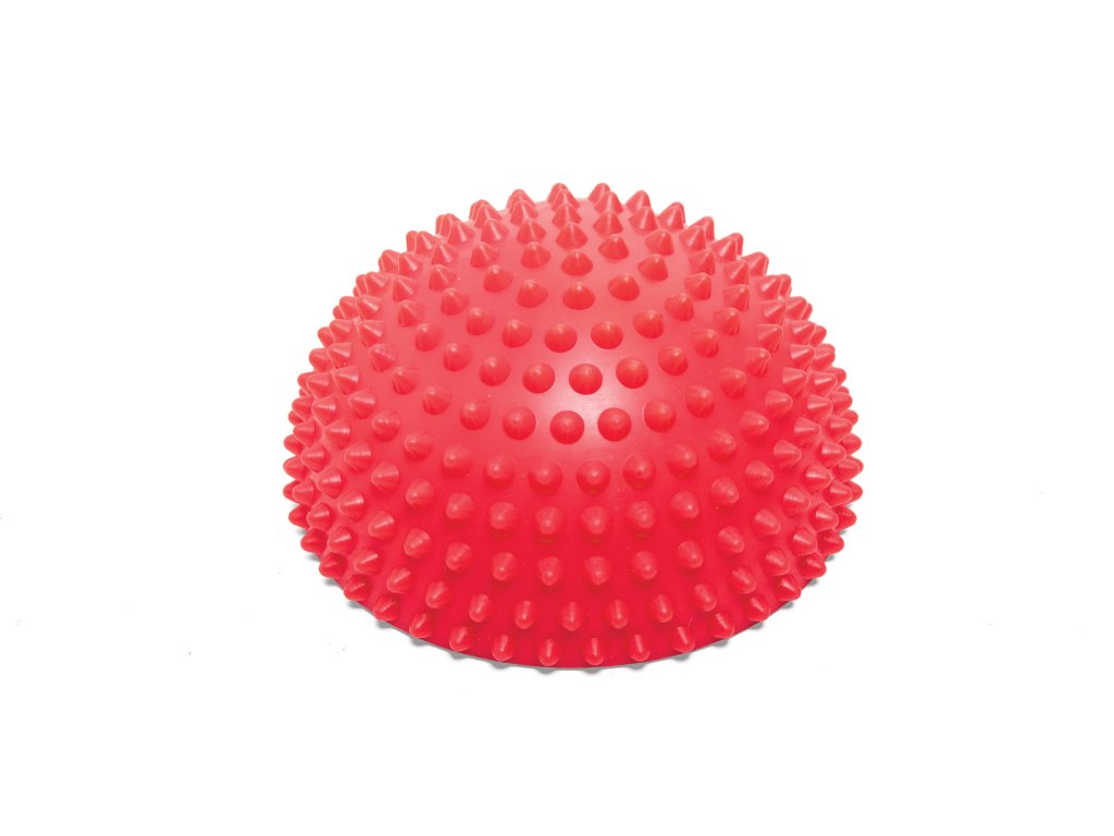 Senzorická polokoule ježek s výstupky (průměr 25 cm) pro rehabilitaci nohou, balanční cvičení a masáž. Stimuluje krevní oběh a koordinaci. Nosnost 120 kg.