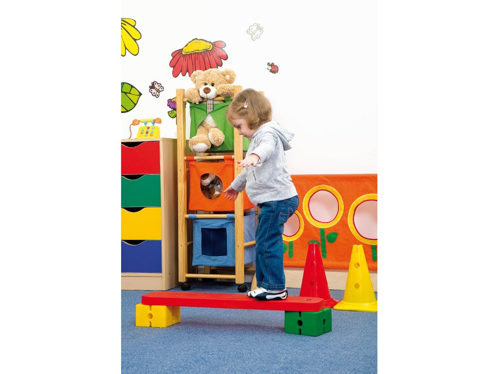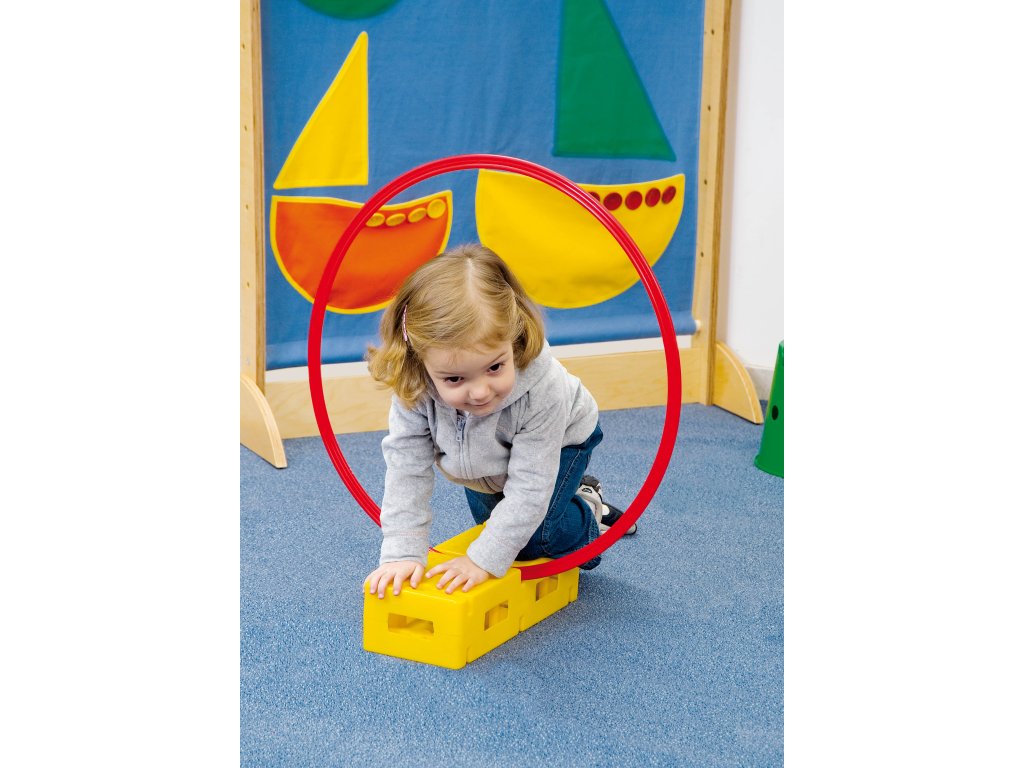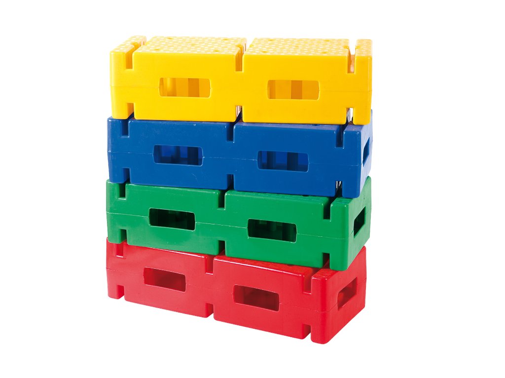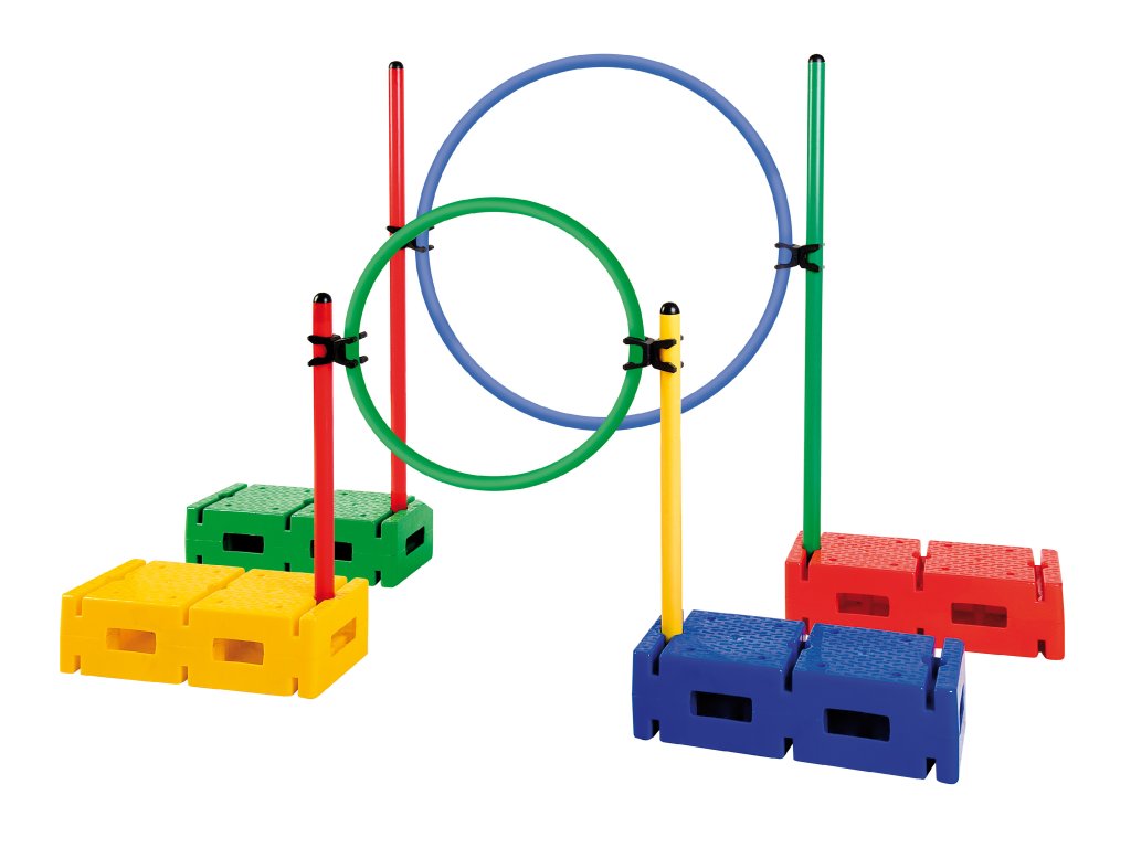 Sada 4 plastových spojovacích cihel (36 × 15 × 9,5 cm) v barvách žlutá, zelená, modrá, červená. Slouží k propojení tyčí a tvorbě překážkových drah či gymnastických sestav.